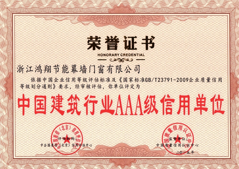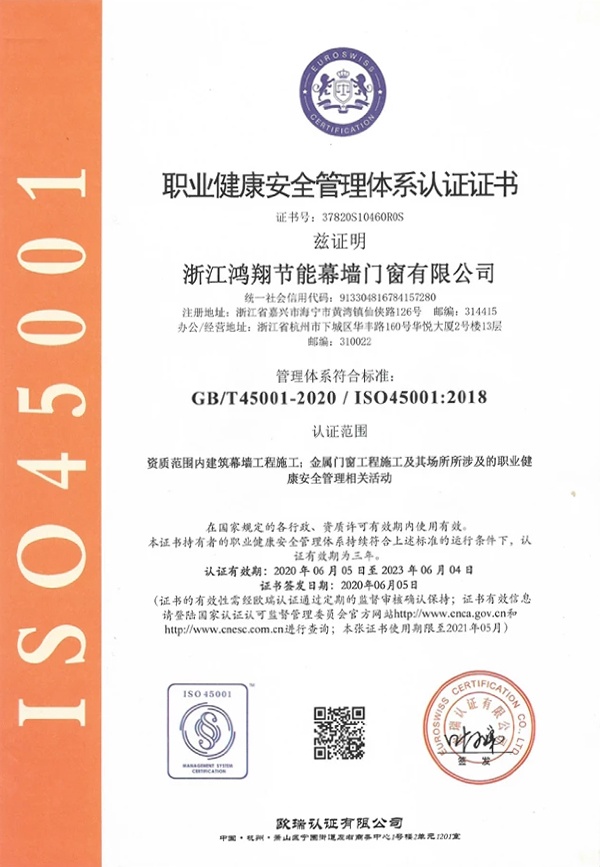 Since its establishment, the company has strictly implemented the scientific management system of modern enterprises, and has fully passed the ISO9001 quality management system, ISO14001 environmental management system and ISO45001 occupational health and safety management system certification. Refer to the advanced management experience of the same industry at home and abroad, adhere to the enterprise spirit of "unity, dedication, rigor and pragmatism", and the business goal of "honoring contracts, ensuring quality and creating excellence, meticulous production, and wholehearted service". "Customer first, reputation first, quality first" One." The service tenet. Fully absorb advanced technology and experience in the design, production, and construction of curtain wall, door and window industries at home and abroad, seize the opportunity of the rapid development of the construction industry, and constantly adapt to the global trend of building energy saving, with the improvement of corporate competitiveness as the core, and vigorously promote system innovation and technology Innovation and management innovation, technology introduction and technology development are combined to work hard to build a first-class enterprise.