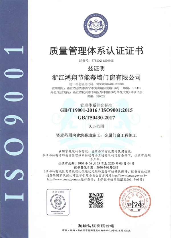 Zhejiang Hongxiang Energy-saving Curtain Wall Door and Window Co., Ltd. was established in September 2008. The company is now a technical Sino-foreign joint venture architectural decoration enterprise integrating R&D, design, production, construction and consulting services of new energy-saving curtain wall doors and windows. The company is located in Hangzhou, a paradise on earth, and its production base is located in Jianshan Industrial Park, Haining, Zhejiang, with a registered capital of 10 million US dollars. The company invested in the construction of a modern energy-saving curtain wall, doors and windows production and processing base with an area of 30,000 square meters in the Jianshan Industrial Park of Haining. The introduction of world-class door and window curtain wall processing equipment from Germany and Italy has fully realized mechanization and numerical control, ensuring product accuracy and quality, and improving production efficiency.